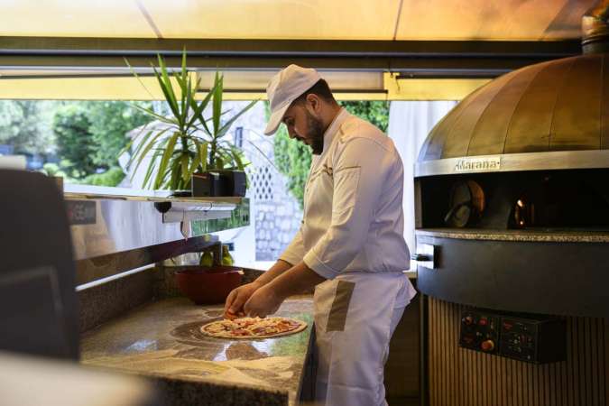 Besonders geschätzt werden unsere Pizzen aus dem traditionellen Holzofen – zubereitet mit frischen Zutaten und lang gereiftem Teig.