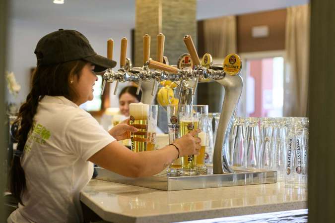 Für Familien gibt es einen Spielplatz im Grünen und eine Panoramaterrasse, auf der sich Kinder sicher austoben können, während die Eltern entspannen.