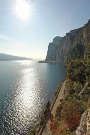 Beim Anblick des Panoramas, das diesem natürliche Paradies Poesie verleiht, schlägt das Herz höher: der Monte Baldo, der sich majestätisch über dem kristallklaren Wasser des Sees erhebt und den weiten klaren Himmel fast berührt.